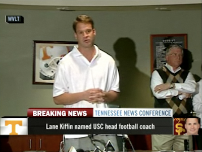Lane Kiffin is doing his best Fievel impression and going west. Last night he accepted the USC head coaching job only 14 months after accepting the same position at Tennessee. He was probably just upset and wanted to get paid after being a Volunteer last season (lame Tennessee mascot joke).